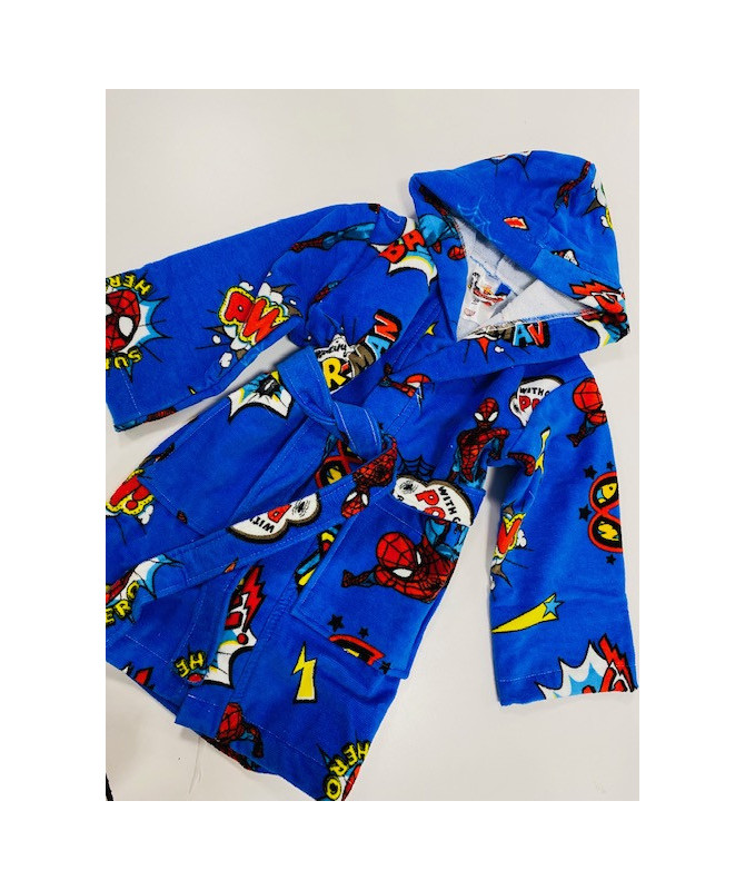 Accappatoio con Cappuccio Spiderman in Cotone 300 gr/mq Grazie al tessuto di Cotone di altissima qualit, durevole e altamente assorbente.