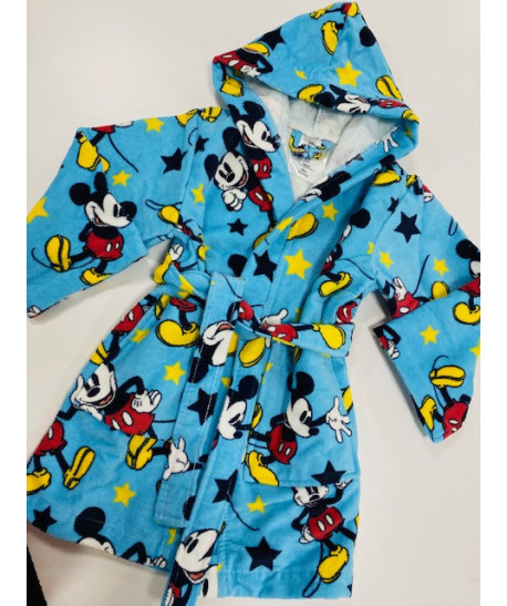 Accappatoio per bambini in spugna idrifila di puro cotone con stampa dei personaggi su tessuto cimato esterno e all'interno spugna di cotone.