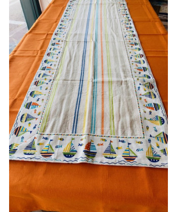 Runner centrotavola 45x150 a scacchi colorati con bordo applicato