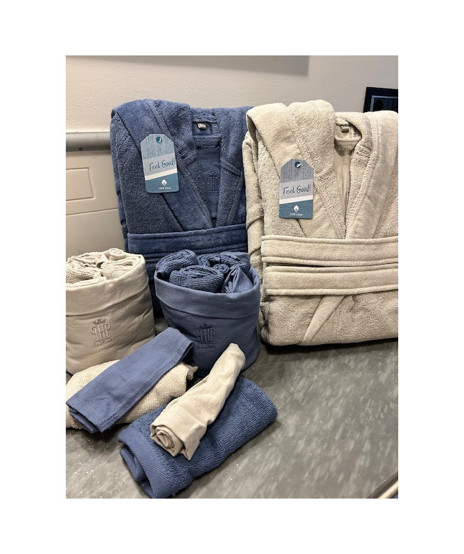 Coppia asciugamani PHP in morbida spugna idrofila in cotone ritorto riccio/velluto 480grmq la confezione comprende un asciugamano viso 60x105 un asciugamano ospite 40x60 un asciugamano ospite in tela di coptone ricamato 40x60 coordinabile con telo bagno e accappatoio