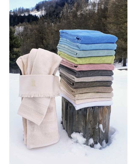 Coppia asciugamani PHP in morbida spugna idrofila in cotone ritorto riccio/velluto 480grmq la confezione comprende un asciugamano viso 60x105 un asciugamano ospite 40x60 un asciugamano ospite in tela di coptone ricamato 40x60 coordinabile con telo bagno e accappatoio