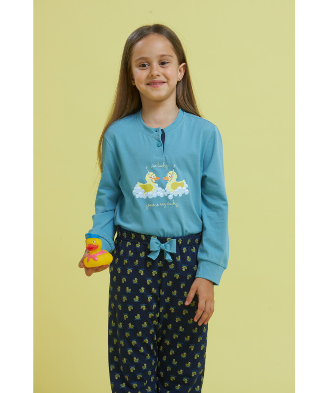 Pigiama Noidnotte bambina in cotone con polsino su manica e pantalone coordinabile con pigiama donna