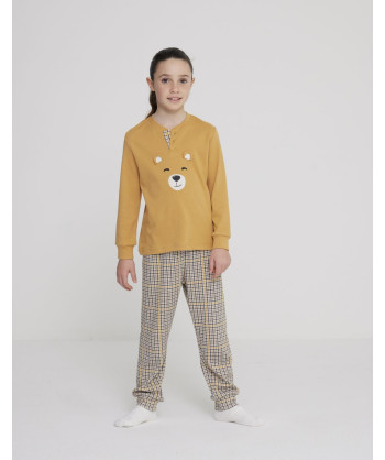 Pigiama bambina Noidnotte Taglio a giacca con bottoni e rouge Fantasia tartan in flanella di cotone Coordinabile con tutta la famiglia.