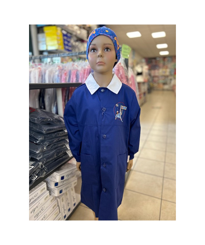 Grembiule per la scuola primaria Ambrosino blu con bottoni e colleto agganciato con bottoni per poterlo lavare separatamente
