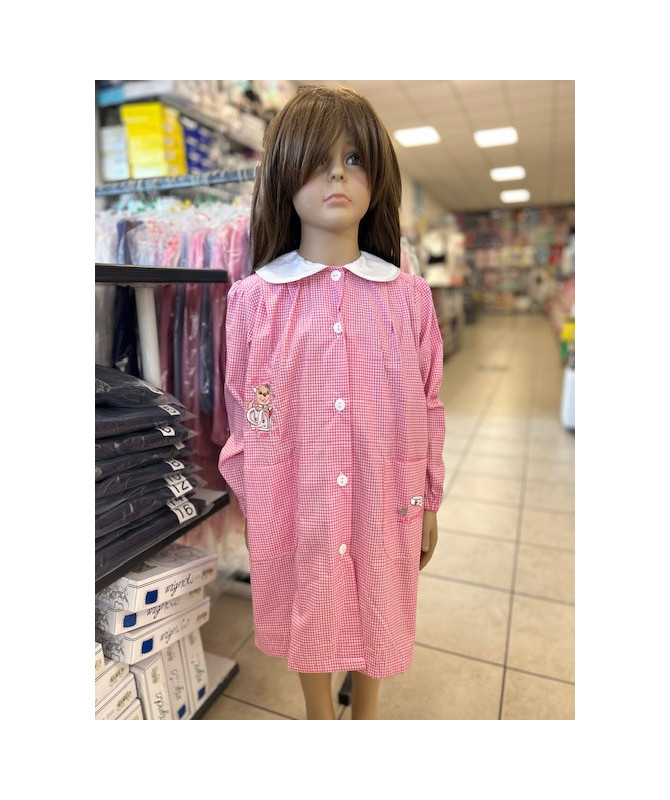Grembiule per la scuola dell'infanzia Ambrosino scacchettino rosa bottoni