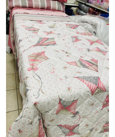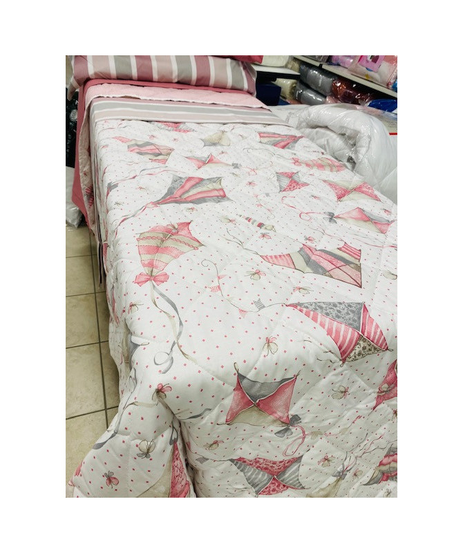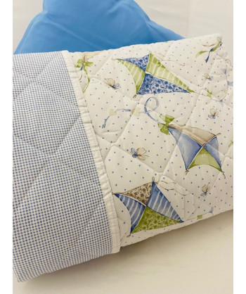 Trapuntino estivo double-face un lato fantasia base bianca con disegno di aquiloni un lato mirofantasia a rombi tessuto esterno puro cotone imbotititura 100gr in poliestere anallergico disponibile singolo 170x260 matrimoniale 260x260