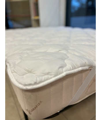 Topper da un lato in cotone 100% crea un effetto fresco ideale per i mesi pi caldi Dall'altro lato in tessuto di mecrofibra per un effetto caldo e avvolgente per i mesi invernali.