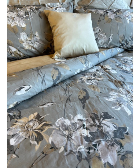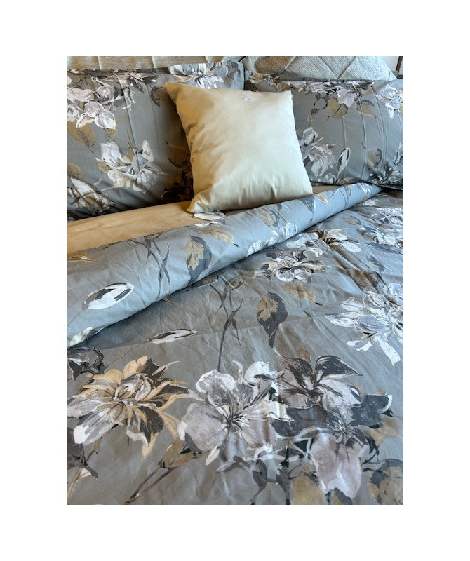 Parure copripiumino Reveer in finissimo raso di cotone sacco 250x200 doible face 2 federe 50x80 con 4 piccoli volant