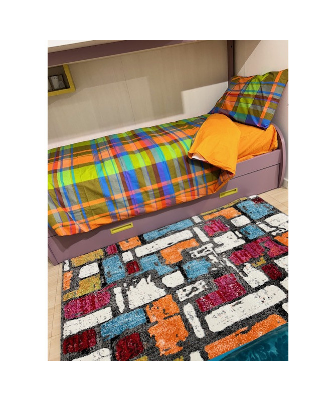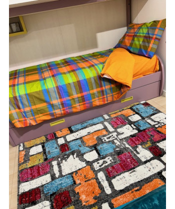 Completo Copripiumino Douglas con vivace disegno geometrico stampato su tela di puro cotone da 58 fili al cmq della Collezione Joy di Gabel E' composto da sacco, sottolenzuolo con angoli da 20 cm e federe.