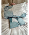 Composto da sacco copripiumino sotto con angolo e federa a due volani Singolo - Sacco 155 x 200 cm, angolo 90x200 cm federa 50x80 piazza e mezzo sacco 200x200 cm, angolo 120x200 federa 50x80