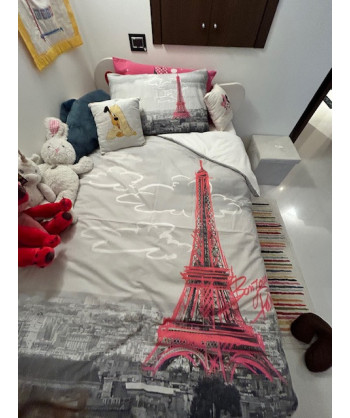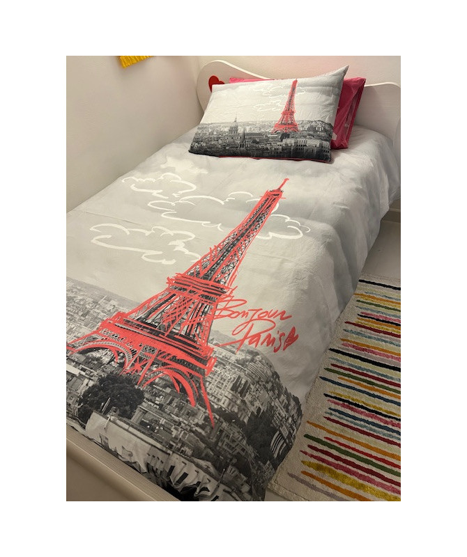 Parure copripiumino stampato con tecnica digitale su tela di puro cotone da 58 fili al cmq.