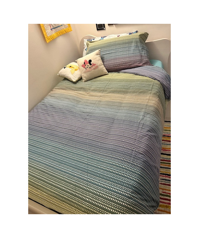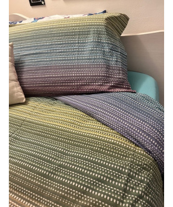 Parure copripiumino Kyoto con stampa geometrica coloratissima.