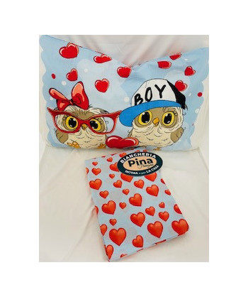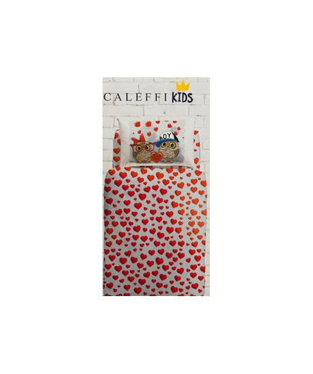 Copripiumino Gufetti Caleffi ³ Stampa dei gufetti innamorati sulla federa, Copripiumino con tanti cuoricini.
