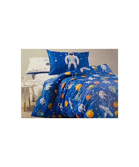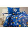 Copripiumino Spazio Caleffi ³ Stampa a tema spazile con pianeti e astronauti Federa double face a fondo bianco e blu In puro e morbido cotone Disponibile nelle misure Singolo sacco 155x200 federa 50x80 Piazza e mezzo sacco 200x200 federa 50x80