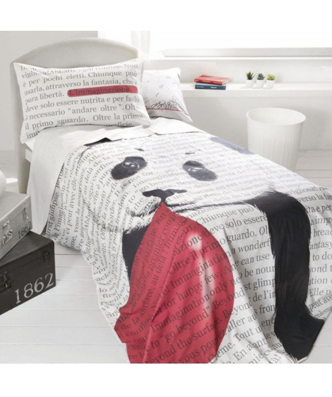 Panda Gabel Stampatp con tecnica digitale su madapolam di puro cotone. Federa piazzata doubleface sacco copripiumino piazzato con sistema pi mio che facilita l'inserimento e l'ancoraggio del piumino. Disponibile nelle misure singolo sacco 155x200 lenzuolo con angoli 90x200+28 federa 50x50 piazza e mezzo sacco 200x200