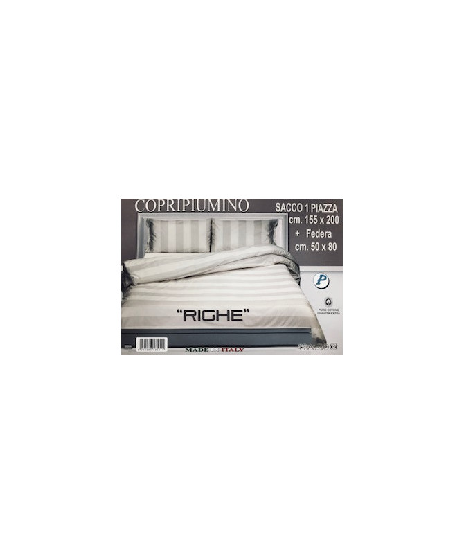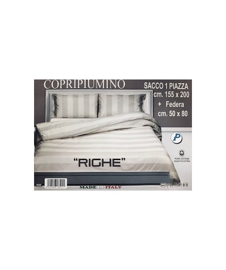 In puro cotone e prodotto in Italia Disponibile nelle misure Singolo sacco 155x200 federa 50x80 Piazza e mezzo sacco 200x200 federa 50x80 Matrimonilare sacco 250x200