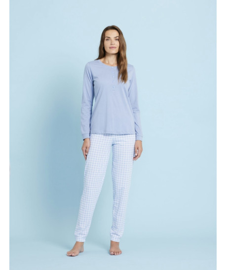 Pigiama donna 100% cotone Noidinotte con polsino su manica e pantalone classico con maglia unita e pantalone a scacchi