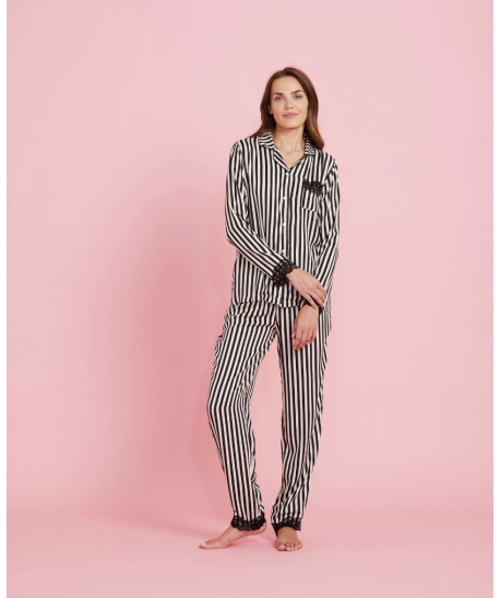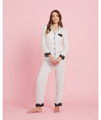 Pigiama donna 100% viscosa Noidinotte giacca stile uomo impreziosita da applicazioni in pizzo