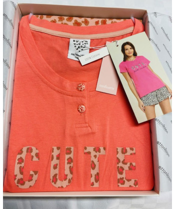 Pigiama donna 100% cotone Noidinotte maglia a mezza manica e pantaloncino corto stampa animalier