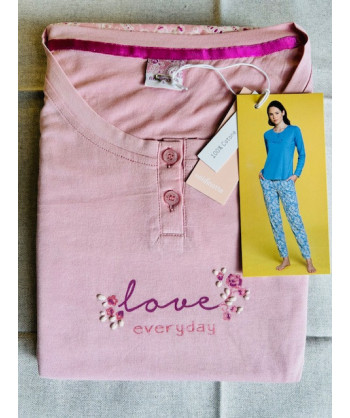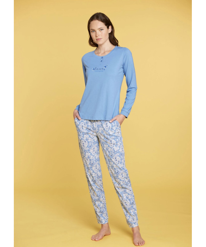 Pigiama donna Noidnotte in cotone con polsino su manica e pantalone coordinadile con pigiama bambini ragazzi e uomo