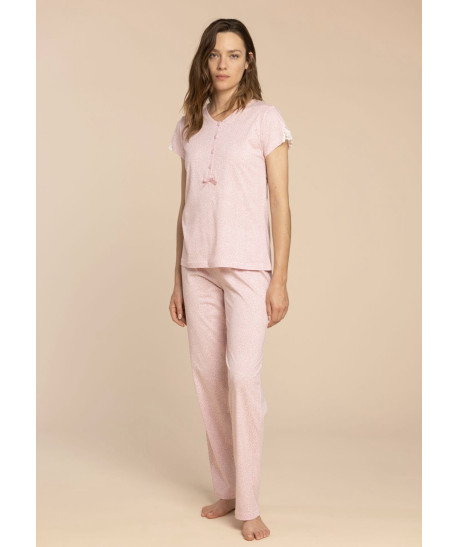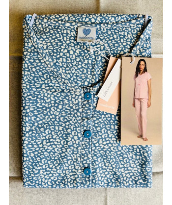 Pigiama Donna Noidnotte Classico con manica corta e pantalone lungo maglia a giacca aperta con tutti i bottoni talglie comformate in cotone 100%