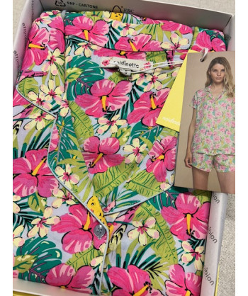 Pigiama donna 100% viscosa Noidinotte canotta a bretellina e pantaloncino corto impreziosito con inserti in pizzo