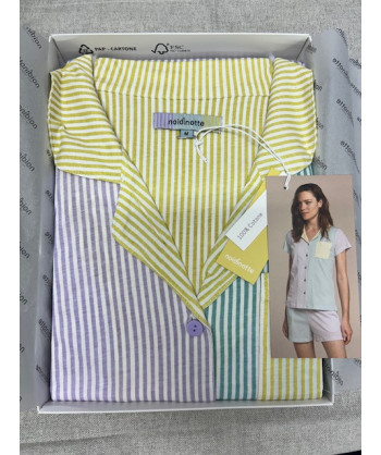 Pigiama Donna Noidnotte Classico con manica corta e pantalone lungo maglia a giacca aperta con tutti i bottoni talglie comformate in cotone 100%