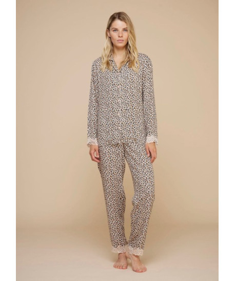 Pigiama donna 100% cotone Noidinotte con polsino su manica e pantalone con fantasia animaler
