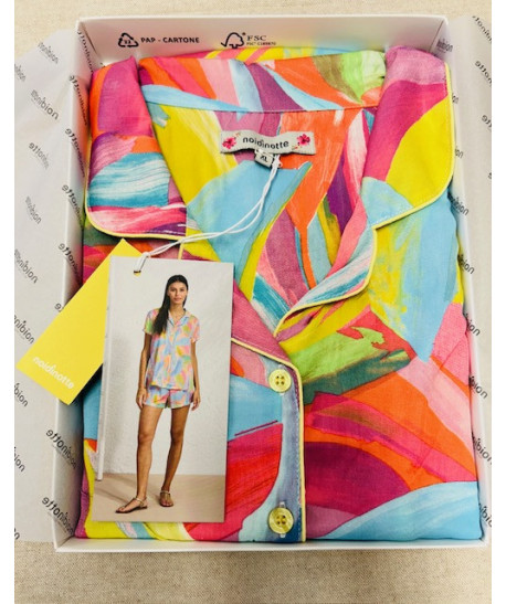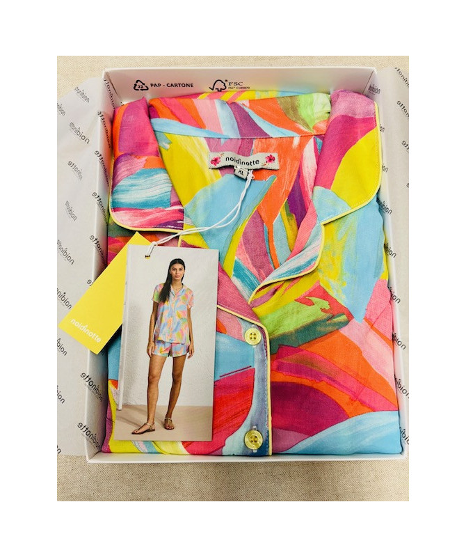 Pigiama donna 100% cotone Noidinotte manica corta e pantaloncino corto (ma non troppo) maglia a giacca tutta aperta sul davanti
