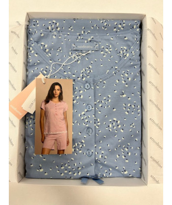 Pigiama donna Noidnotte in cotone con manica corta e pantalone corto Coordinabile con tutta la famiglia uomo donna bambini