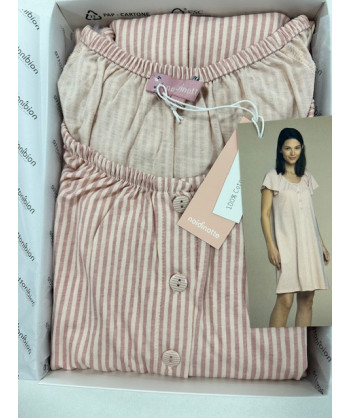 Pigiama donna Noidnotte con manica ad aletta e pantalone a non troppo corto al ginocchio maglia a giacca tutta aperta con bottoncini misure conformate
