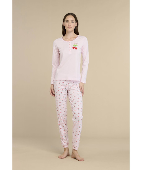 Pigiama donna 100% cotone Noidinotte con polsino su manica e pantalone simpatico con cagnolino stampato sulla maglia e pantalone con microfantasia