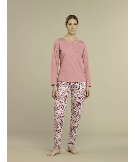 Pigiama donna 100% cotone Noidinotte con polsino su manica e pantalone