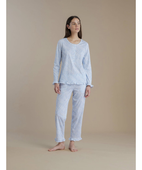 Pigiama donna 100% cotone Noidinotte con polsino su manica e pantalone