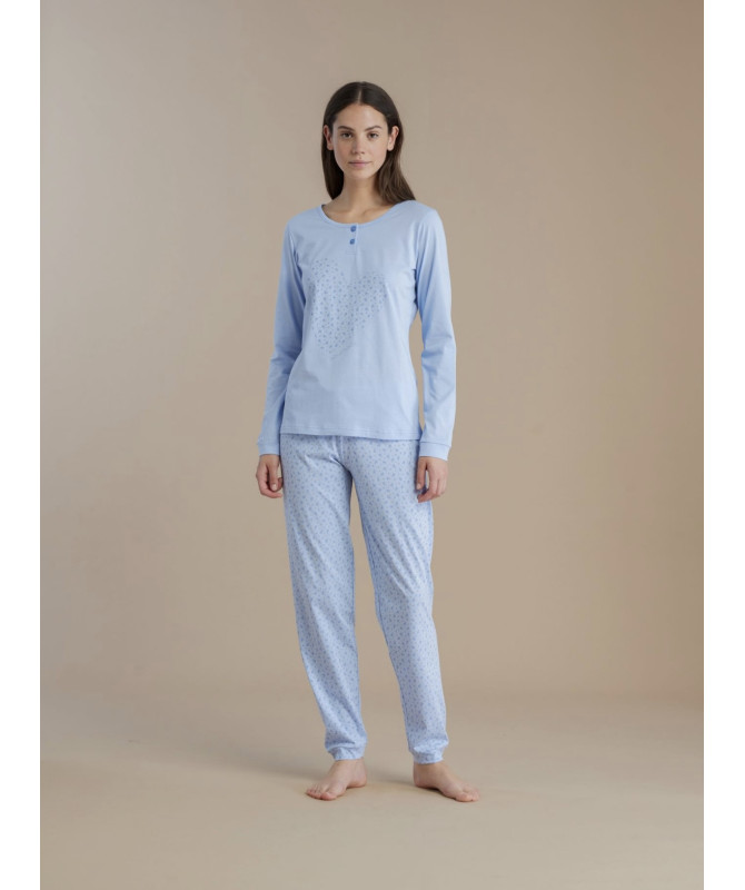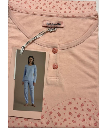 Pigiama donna 100% cotone Noidinotte con polsino su manica e pantalone giacca con apertura profonda adatta elle neomamme taglie conformate