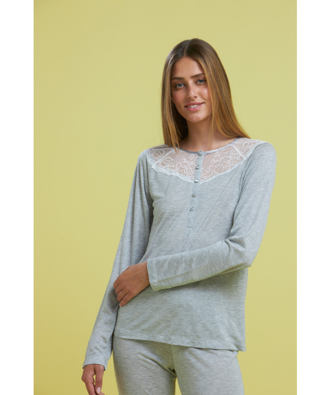 Pigiama donna Noidnotte Cassico pigiama con maglia unita e pantalone con mictro fantasia a pois polsino su manica e pantalone coordinabile con la vestaglietta