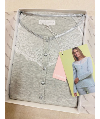 Pigiama donna Noidnotte Classico con giacca aperta con tutti i bottoni e micro fantasia a pois pantalone senza polsino in tinta unita coordinabile con vestaglietta a pois in cotone 100%