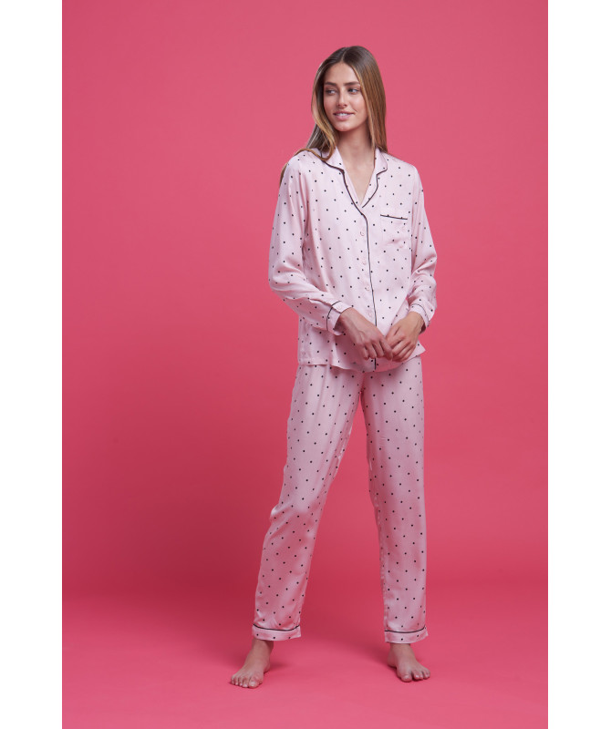 Pigiama donna Noidnotte Cassico pigiama con maglia unita e pantalone con mictro fantasia a pois polsino su manica e pantalone coordinabile con la vestaglietta