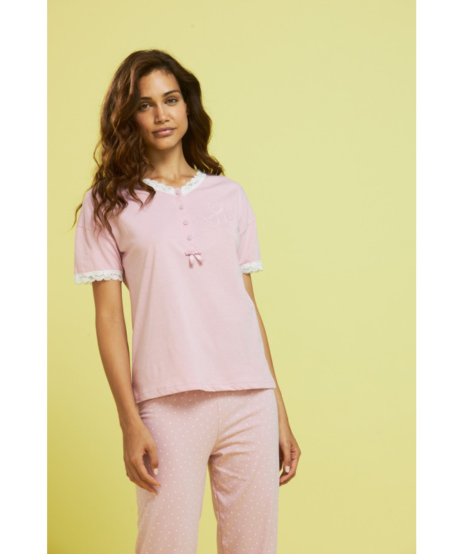 Pigiama donna Noidnotte in cotone manica corta e pantalone lungo taglie comformate