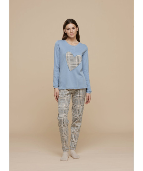 Pigiama donna Noidnotte in caldo cotone con fantasia animalier sulla maglia e pantalone unito.