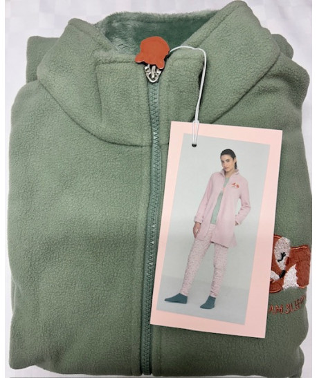 Pigiama donna in caldo felpato Noidnotte con il tradizionale orsetto,maglia con applicazione e pantalone a scacchi polsino su manica e pantalone