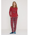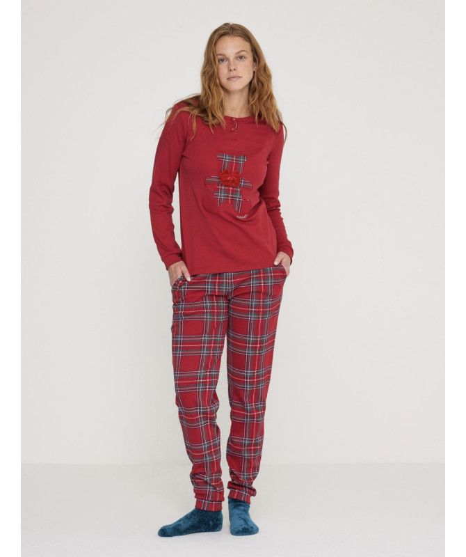 Pigiama donna in caldo cotone Noidnotte con il tradizionale orsetto,maglia con applicazione e pantalone a scacchi polsino si manica e pantalone