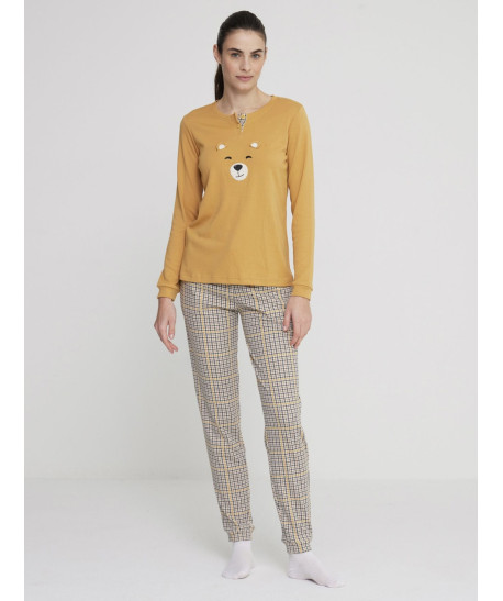 Pigiama donna in caldo cotone Noidnotte con il tradizionale orsetto,maglia con applicazione e pantalone a scacchi polsino si manica e pantalone