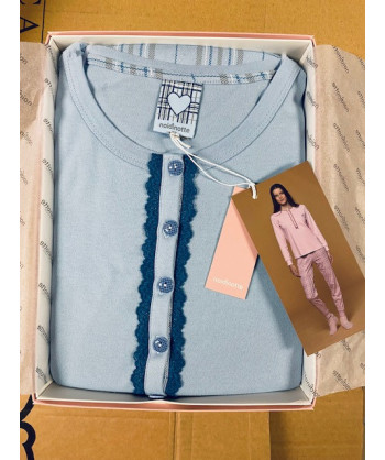 Pigiama donna in caldo cotone Noidnotte elegante e classico da signora la giacca ha un apertura profonda con bottoni adatto a chi allatta polsino su manica e pantalone