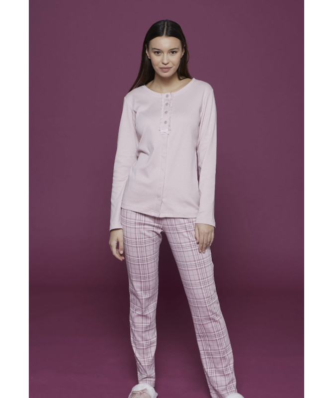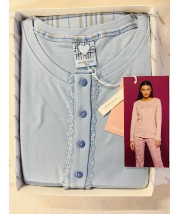 Pigiama donna in caldo cotone Noidnotte elegante e classico da signora la giacca ha tutti i bottoni sul davanti per indossarlo pi facilmete adatto a chi allatta o per soggiorni in ospedale polsino nel pantalone e manica libera senza polsino