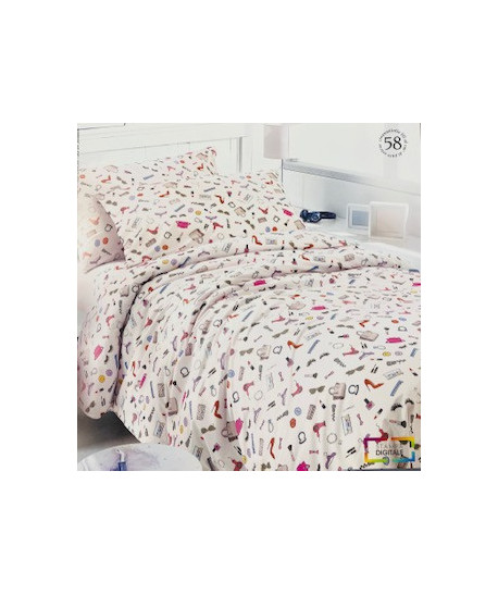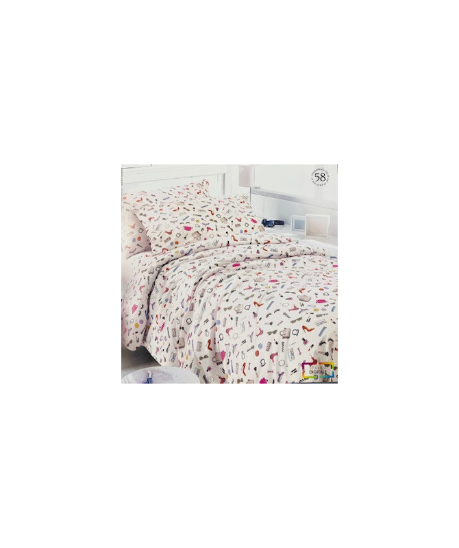 Simpatica stampa prettamete femminile o maschile Questo completo letto fa parte della collezione Teen di Gabel Disegni pensati per ragazzi e realizzati dagli studenti, infatti Gabel affida questo progetto proprio ai futuri stilisti. Tessuto madapolam di puro cotone disponibile Singolo sacco 155x200 lenzuolo con angoli 90x200+28 federa 50x80 Piazza e mezzo