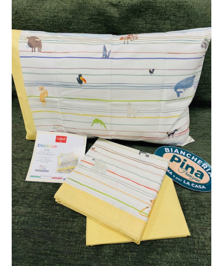 Completo lenzuolo in puro coton per lettino con le barre collezione Crosello di casa Gabel lenzuolo per sotto con angoli 60x120 lenzuolo sopra 120x180 federa 40x60
