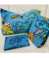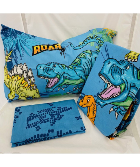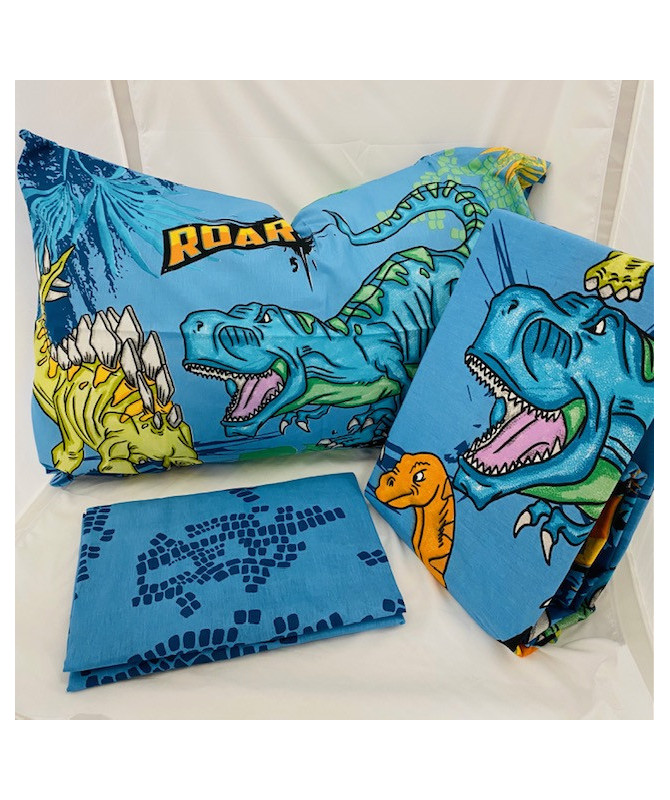 Completo lenzuola Dino Con una avvincente stampa di dinosauri su base azzurro in puro cotone Dispinibile solo nella misura singola lenzuolo sopra 150x290 lenzuolo con angoli 90x200 una federa 50x80