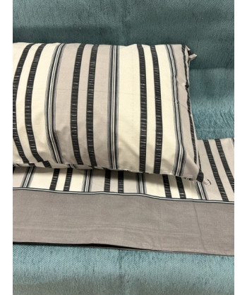 Completo lenzuola con delicata stampa a righe Prodotto interamente in Italia in cotone 100% disponibile nelle misure singolo sotto con angoli 90x200 +25 lenzuolo sopra 150x290 una federa a sacco 50x80 matrimoniale sotto con angoli 180x200 +25 lenzuolo sopra 240x290 2 federe a sacco 50x80 piazza e mezzo