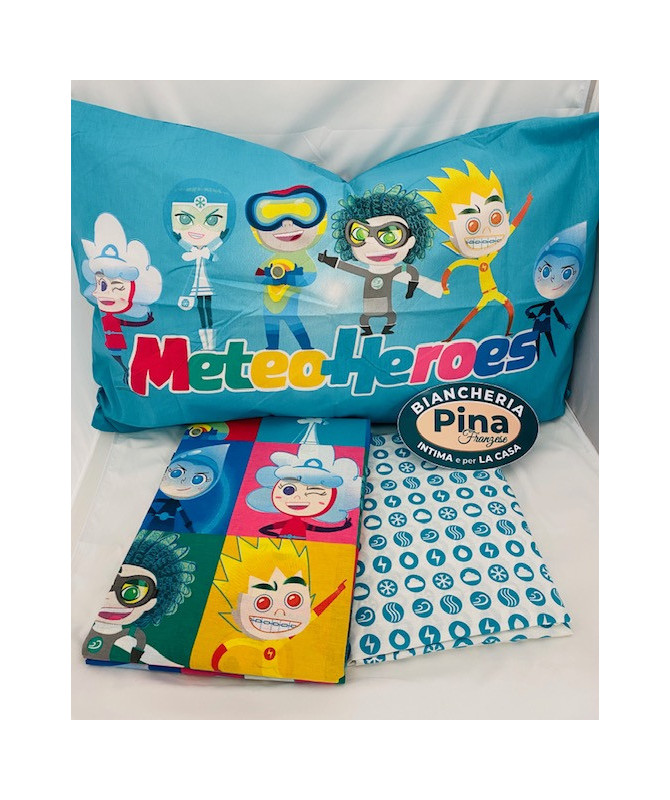 Lenzuola in puro cotone con la stampa dei Meteoheroes.